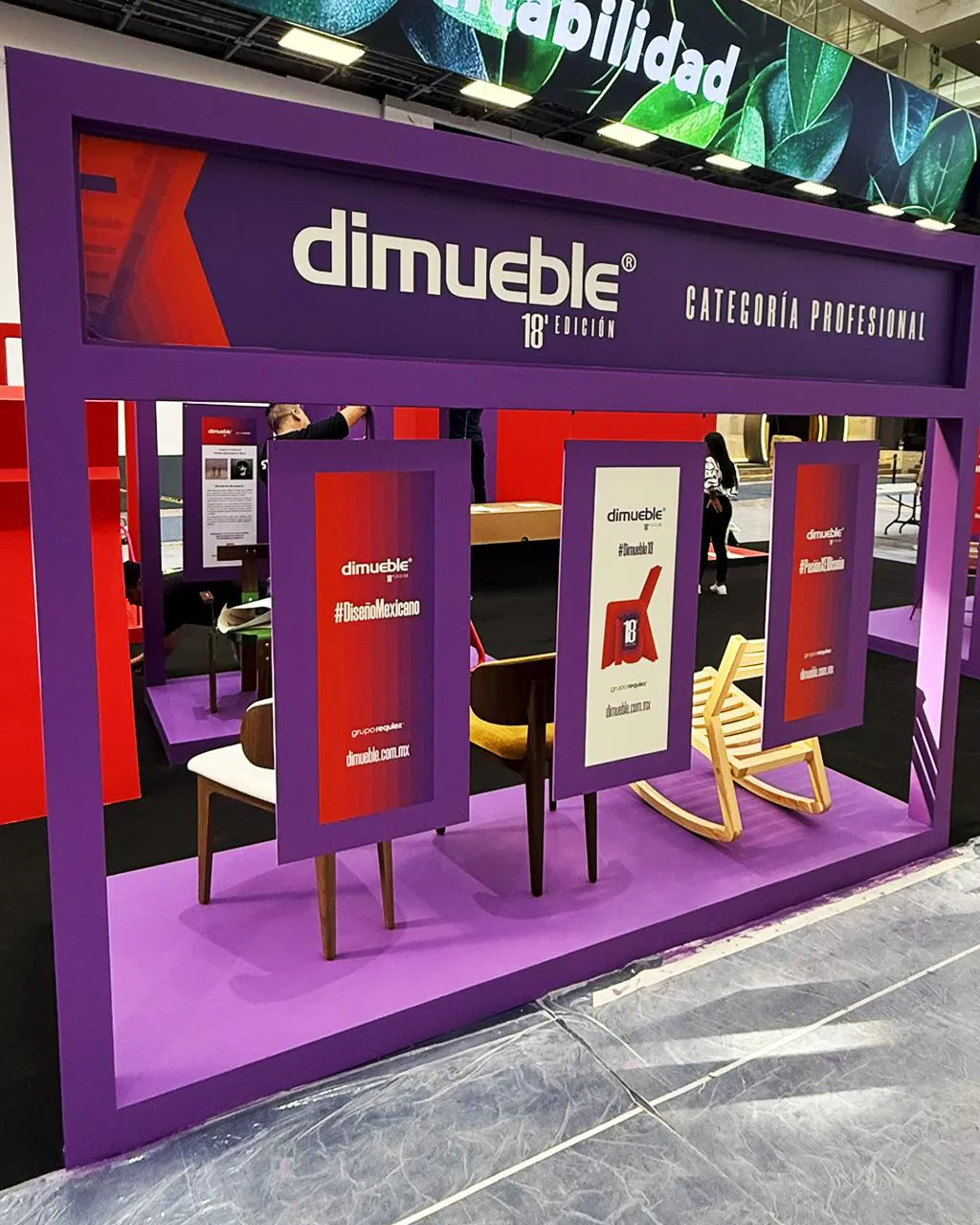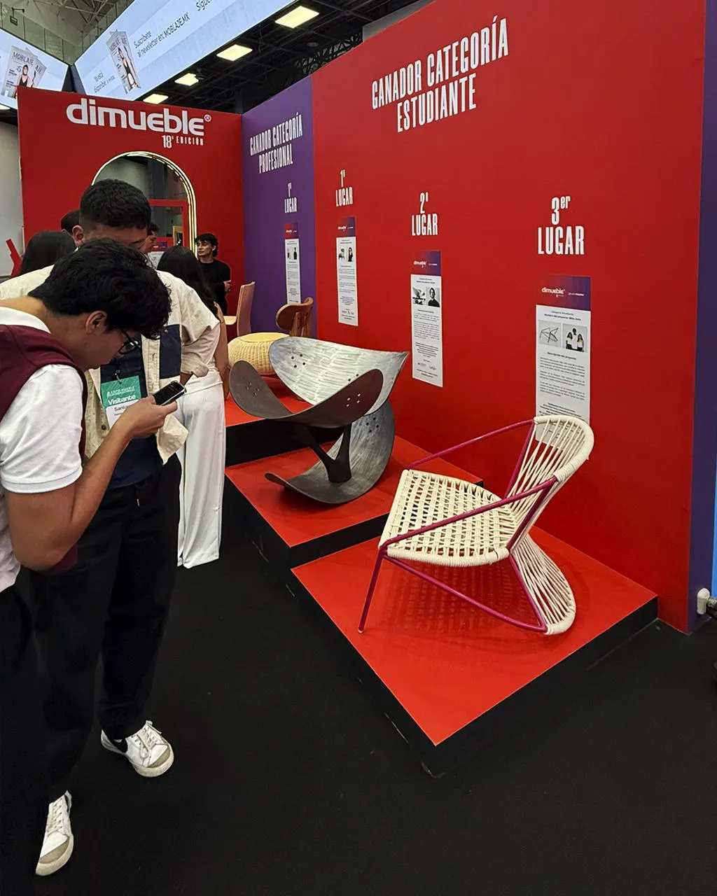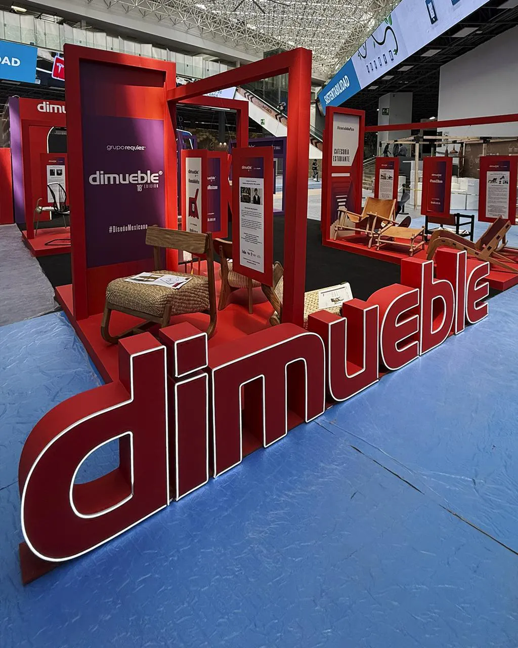 Diseño y fabricación de Stand 15 x 6 metros para DIMUEBLE durante Expo Mueble Internacional; Creamos un espacio que dio la bienvenida a los visitantes durante su edición. El stand presentó una colección de muebles desarrollada por estudiantes, integrando un podio central que convirtió el espacio en un punto de encuentro dinámico dentro de la Expo. Su diseño minimalista, combinado con una paleta de colores estratégica e iluminación LED, logró un impacto visual atractivo y contemporáneo que destacó desde la entrada del recinto.